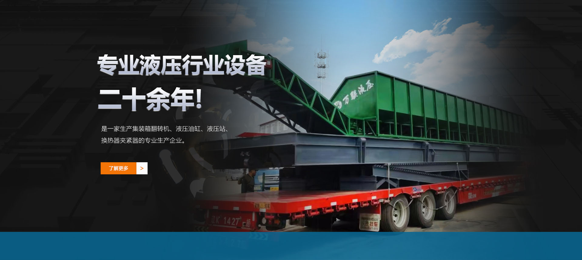 遼寧萬(wàn)聯(lián)液壓熱力制造有限公司是一家生產(chǎn)液壓翻板機(jī)、集裝箱翻轉(zhuǎn)機(jī)、液壓油缸、液壓站、液壓夾緊器的專(zhuān)業(yè)生產(chǎn)企業(yè)。2010年在遼寧昌圖縣老四平工業(yè)園新建車(chē)間